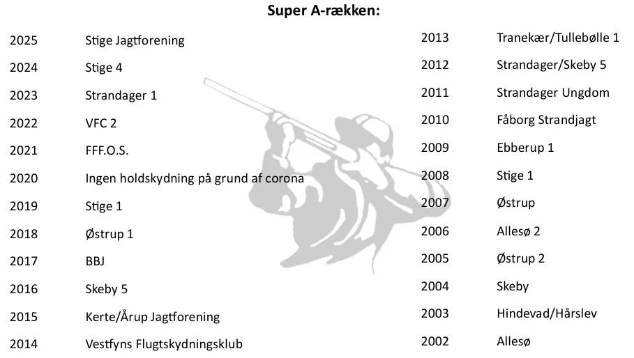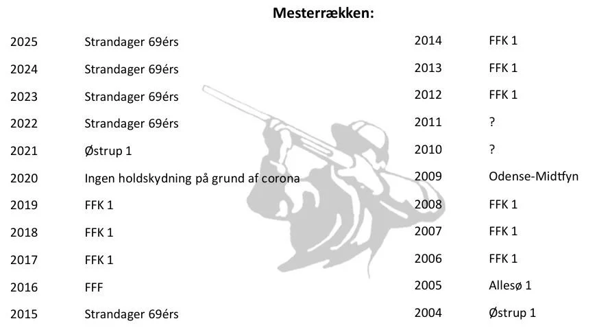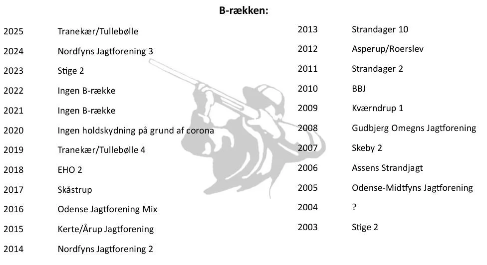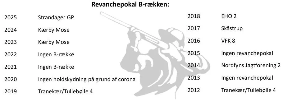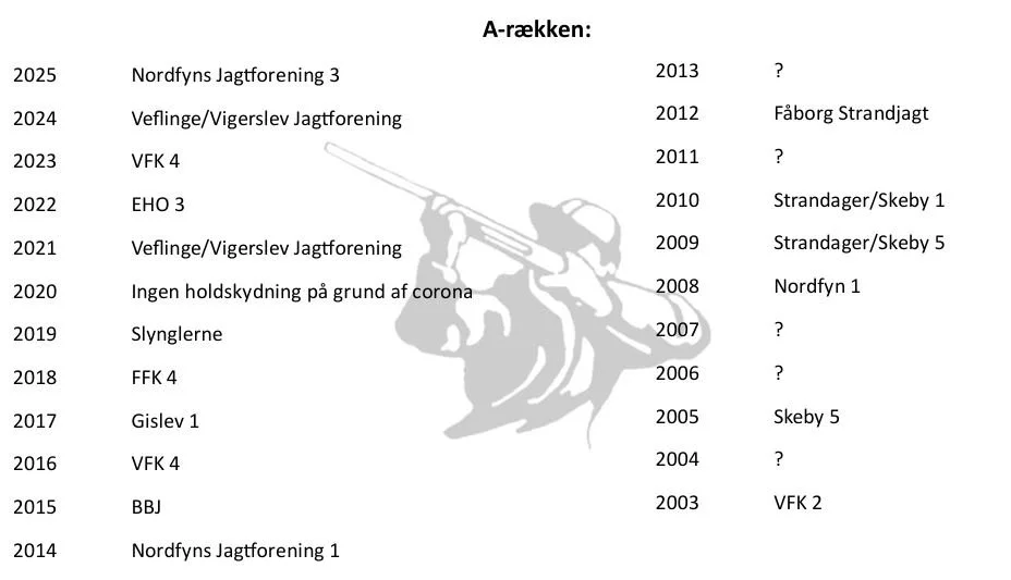 Oversigt over historiske vindere af turneringen i Holdturnering Fyn, samt vindere af revanchepokalerne i forbindelse med finaleskydningerne.